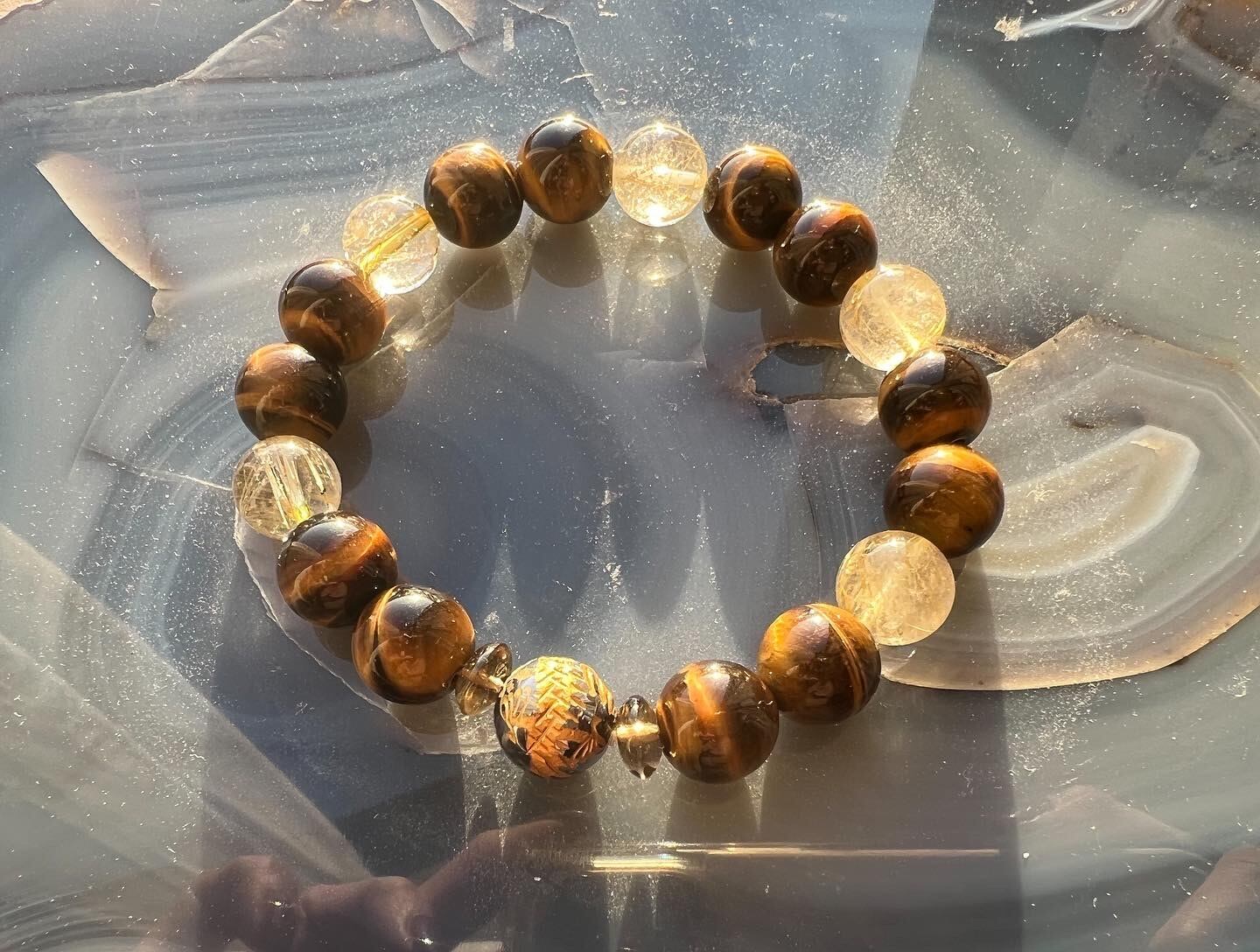 12ミリのルチルクォーツとイエロータイガーアイの金運、勝負運強化ブレスレット